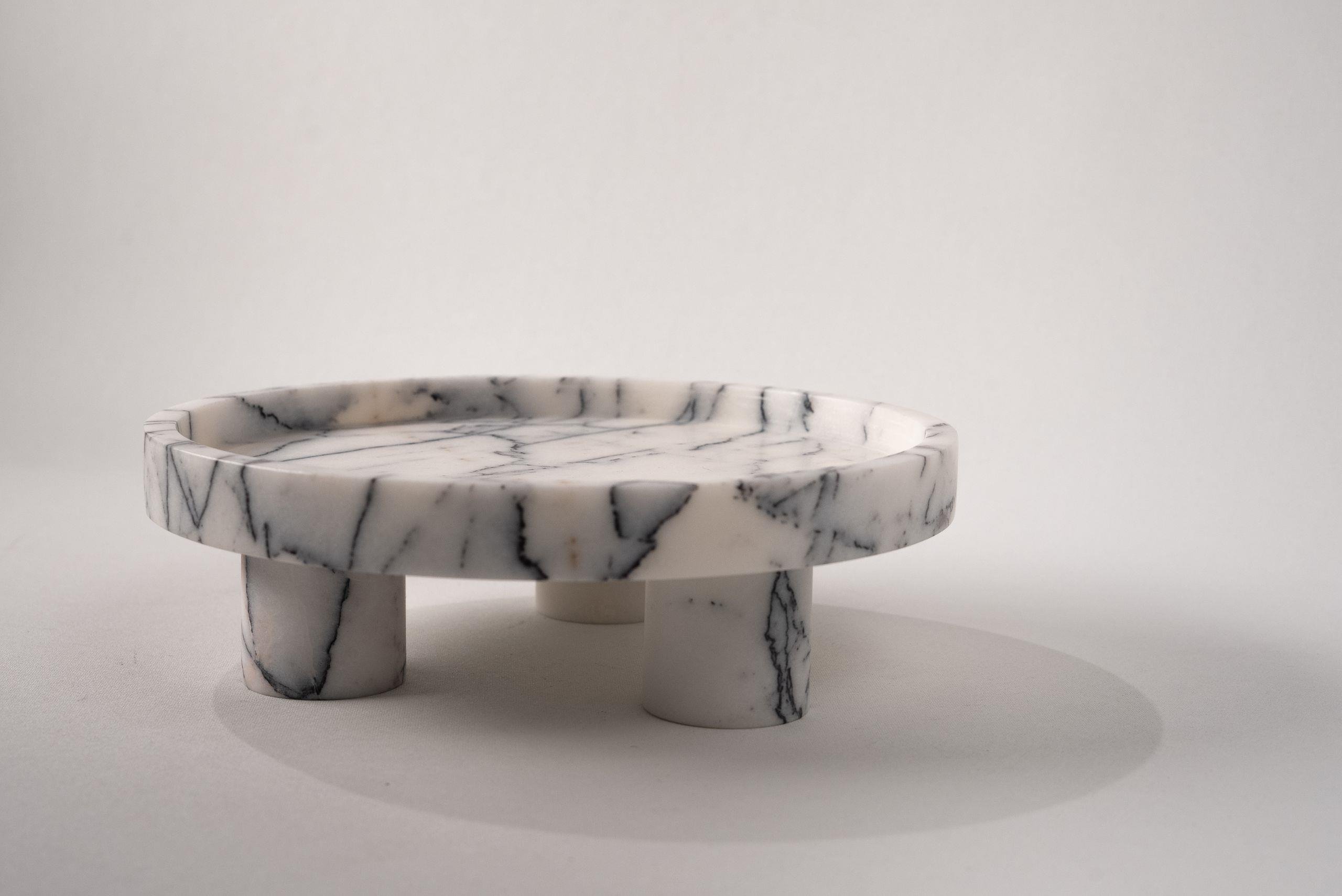 Harriet ayaklı sunum tepsisi siyah ve leylak mermer alternatiflerinden oluşur ve blok mermerlerden el işçiliği ile tasarlanmıştır. Tepsinin benzersiz iskandinav esintili tasarımı, üç parça som mermer ayaktan oluşarak her eve mükemmel uyum sağlar. Yüksek ayakları sunumlarınızı, pastalarınızı yükselterek sehpanız veya yemek masanız için mükemmel bir orta parçası haline getirir. Harriet ayaklı sunum tepsisini farklı alanlarda mum, çiçek ve dekoratif objelerinizi sergilemek için de kullanabilirsiniz.