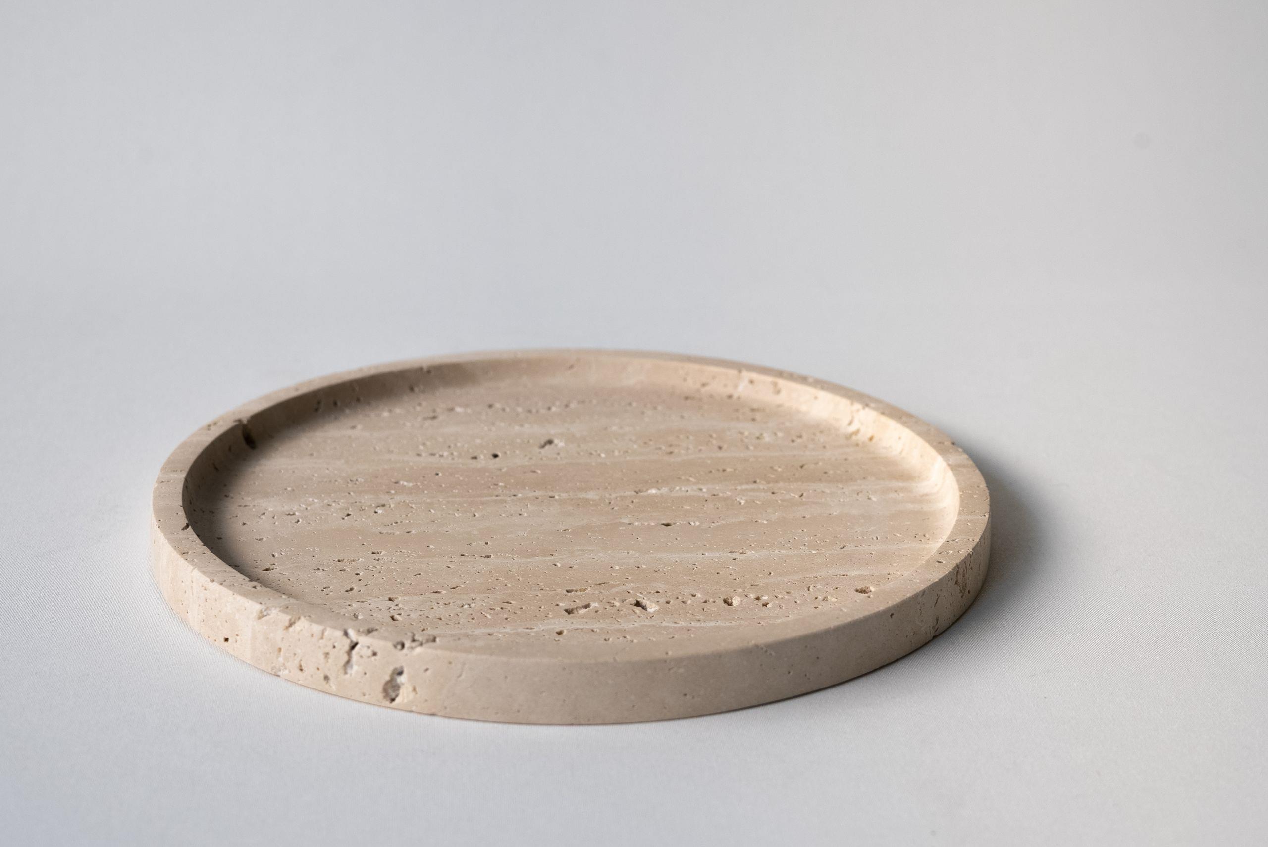 Koral yuvarlak tepsi siyah ve traverten çeşitlerinde mevcuttur.