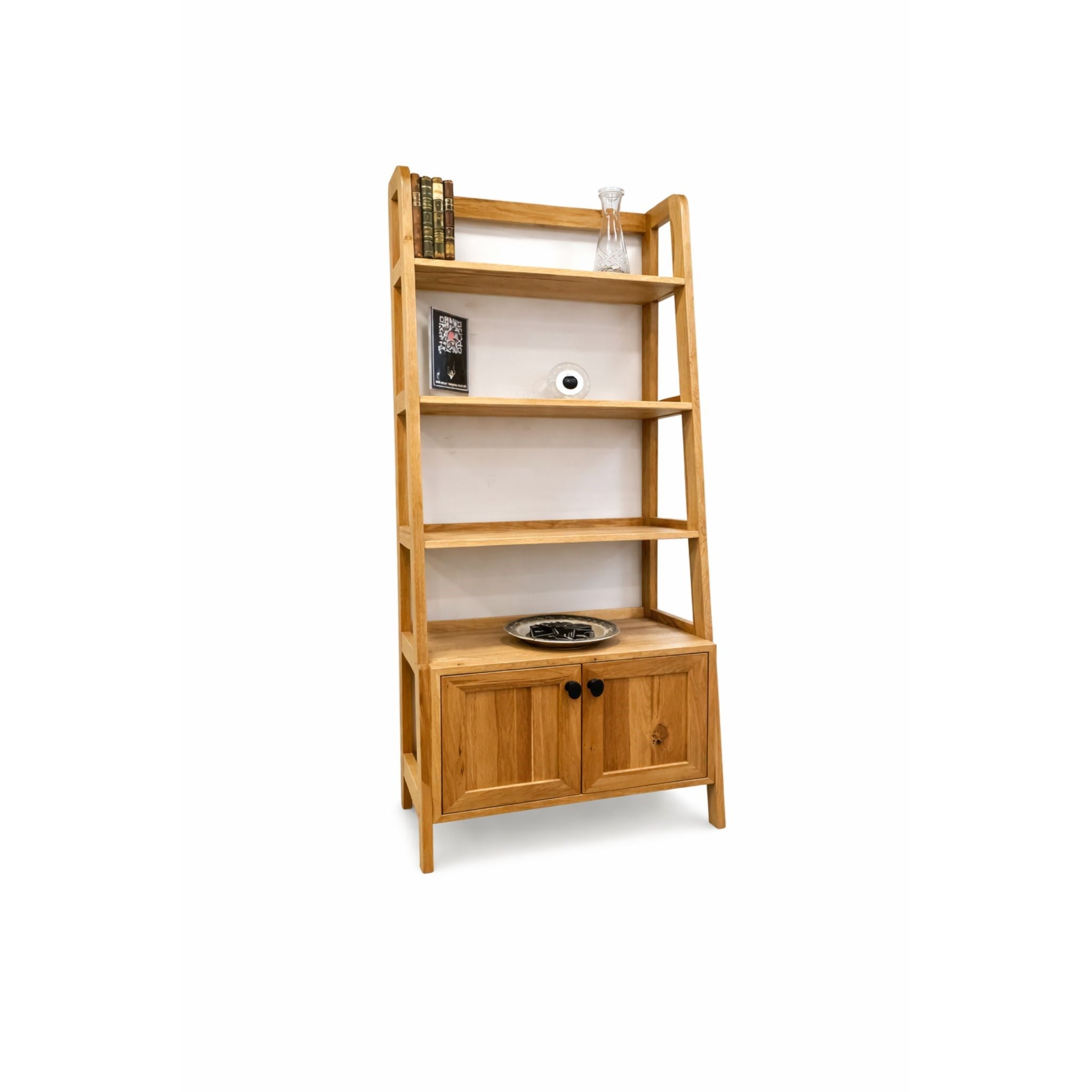 Merdiven Görünümü sayesinde üst raflara güvenli ve konforlu bir şekilde erişim sağlanır. Geniş raf aralıkları, kitaplarınızdan dekoratif objelere kadar pek çok parçayı düzenli ve estetik bir şekilde sergilemenize olanak tanır.