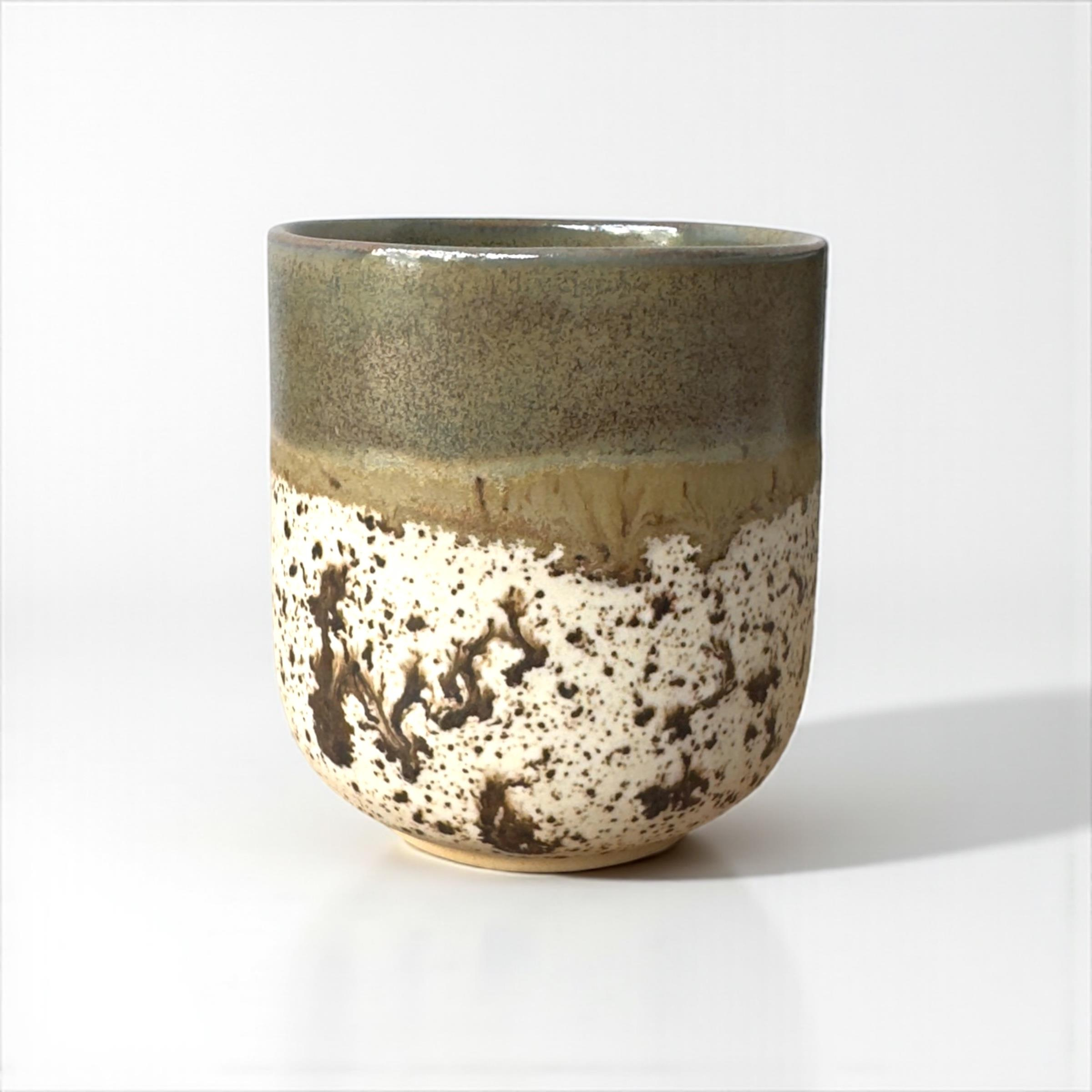 Zeytin yeşilinin huzurlu tonları ve doğadan esinlenen benekli yüzeyiyle her detayı eşsiz. Zamansız, doğal ve el yapımı bir dokunuş.